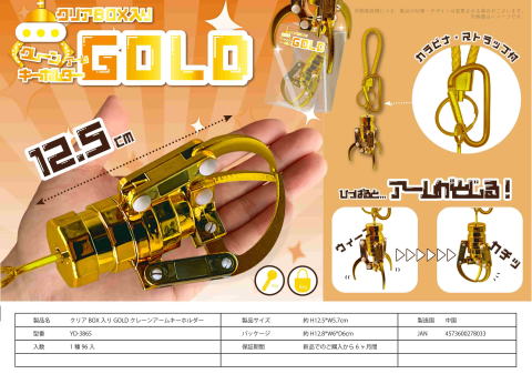 クリアBOX入り GOLD クレーンアームキーホルダー