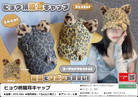 ヒョウ柄猫耳キャップ
