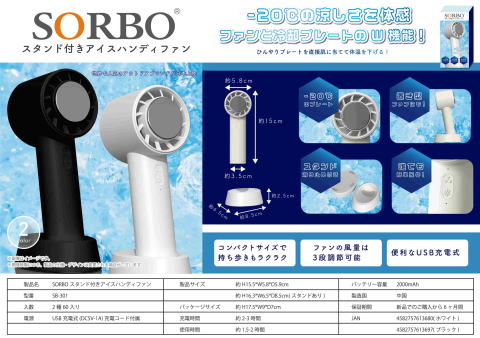 SORBO スタンド付きアイスハンディファン