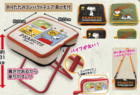 スヌーピー折りたたみコンパクトチェアー肩ひも付