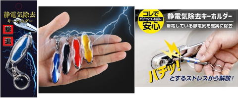 静電気除去キーホルダー 4色アソートGR-118