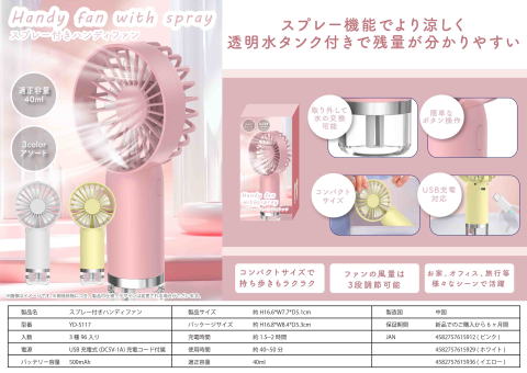 スプレー付きハンディファン