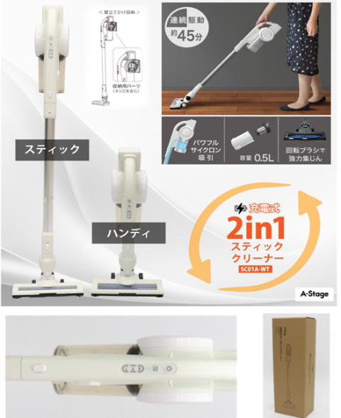 充電式2in1スティッククリーナー SC01A-WT