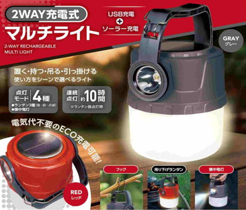 ソーラー&USBの2WAY充電! 屋外・屋内で使えるマルチライト