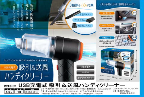 USB充電式 吸引&送風ハンディクリーナー IB-213S