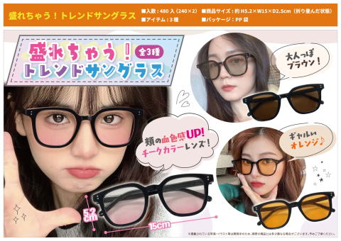 流行のチークサングラスも入ったシンプルサングラス3種!
