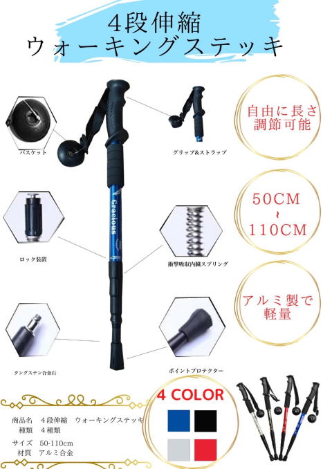 4段伸縮 ウォーキングステッキ Ⅼ字タイプ