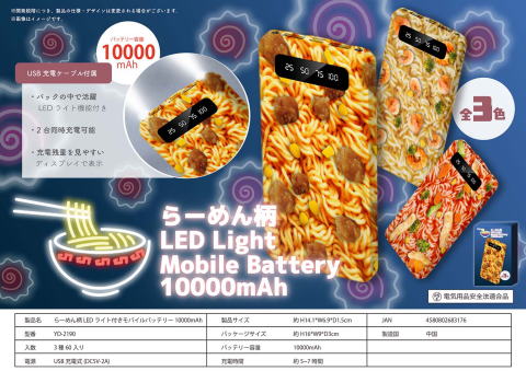 らーめん柄LEDライト付きモバイルバッテリー10000mAh