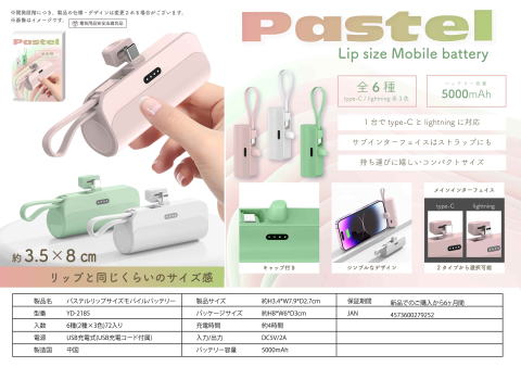 パステルリップサイズモバイルバッテリー