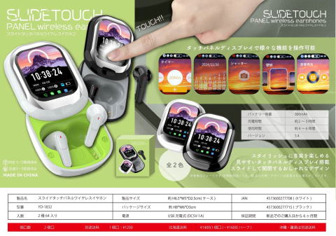スライドタッチパネルワイヤレスイヤホン