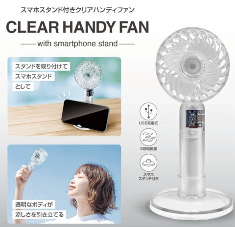 スマホスタンド付きクリアハンディファン