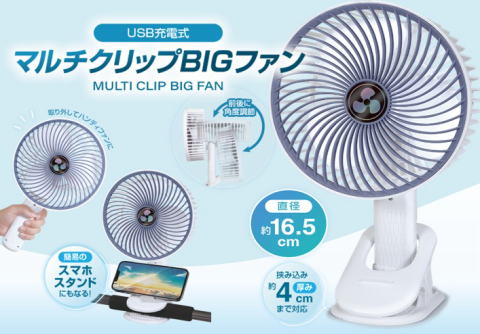USB充電式マルチクリップBIGファン